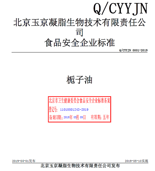 北京玉京凝脂生物技術(shù)有限責(zé)任公司本次備案的企業(yè)標(biāo)準(zhǔn)《梔子油》,經(jīng)過(guò)我公司技術(shù)人員朱麗真老師的編寫(xiě)、備案,所提交的材料符合北京市衛(wèi)健委的備案要求,于2019年05月成功備案并在北京市食品安全標(biāo)準(zhǔn)管理系統(tǒng)公示。